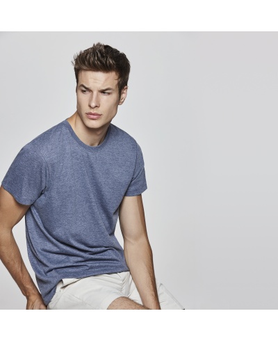 Kurzarmeliges T-Shirt, Melange-Gewebe. 1x1 gerippter Rundhalskragen. Nackenband. Schlauchware.