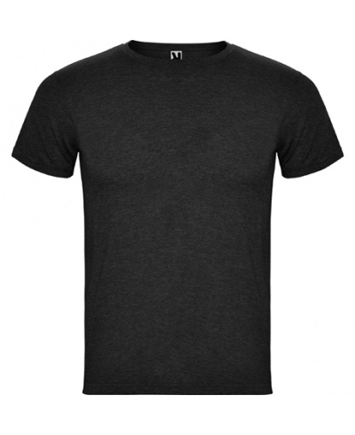 Kurzarmeliges T-Shirt, Melange-Gewebe. 1x1 gerippter Rundhalskragen. Nackenband. Schlauchware.