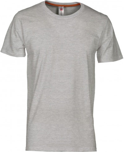 Herren-T-Shirt mit Rundhalsausschnitt, kurzärmelig, Feinripp-Kragen 1,5 cm aus Spandex-Mischgewebe mit Kappnaht an der Vorderseite, Verstärkungsband in Kontrastfarbe von Schulter zu Schulter, das im Kragen sichtbar ist, Stretchnähten, Seitennaht