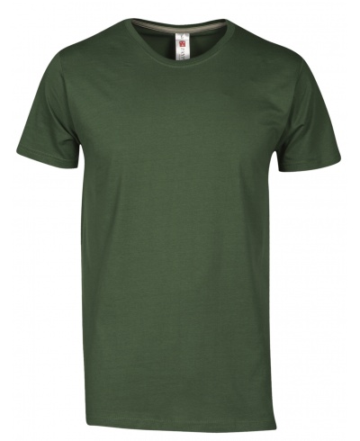 Herren-T-Shirt mit Rundhalsausschnitt, kurzärmelig, Feinripp-Kragen 1,5 cm aus Spandex-Mischgewebe mit Kappnaht an der Vorderseite, Verstärkungsband in Kontrastfarbe von Schulter zu Schulter, das im Kragen sichtbar ist, Stretchnähten, Seitennaht