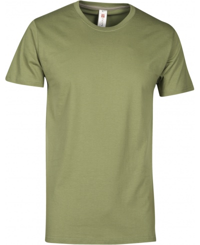 Herren-T-Shirt mit Rundhalsausschnitt, kurzärmelig, Feinripp-Kragen 1,5 cm aus Spandex-Mischgewebe mit Kappnaht an der Vorderseite, Verstärkungsband in Kontrastfarbe von Schulter zu Schulter, das im Kragen sichtbar ist, Stretchnähten, Rundstrick (Tarnfarbe mit Seitennaht)
