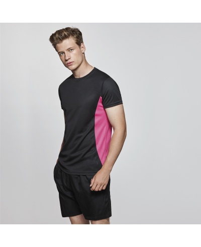 Zweifarbiges kurzärmeliges Funktions-T-Shirt.
