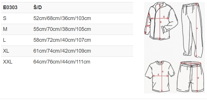 Hose: Seitentaschen und Beinabschluss mit Reißverschluß. Elastischer Bund und Kordelzug in Kontrastfarben.