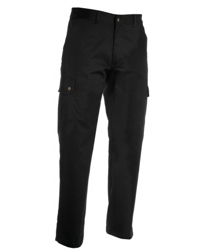 Winter-Herrenhose mit seitlich dehnbarem Bund und Gürtelschlaufen, Hosenschlitz mit Metallreißverschluss und -knopf, zwei klassisch geschnittenen Vordertaschen, zwei Seitentaschen mit Patte und Druckknöpfen, einer Reißverschlusstasche links, einer Einstecktasche für den Zollstock rechts, zwei Gesäß-Leistentaschen mit Knopf und Knopfloch