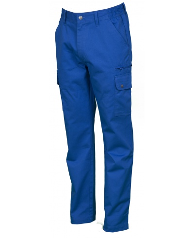 Ganzjährig tragbare Herrenhose mit seitlich dehnbarem Bund und Gürtelschlaufen, Hosenschlitz mit Metallreißverschluss und -knopf, zwei klassisch geschnittenen Vordertaschen, zwei Seitentaschen mit Patte und Druckknöpfen, einer Reißverschlusstasche links, einer Einstecktasche für den Zollstock rechts, zwei Gesäß-Leistentaschen mit Knopf und Knopfloch