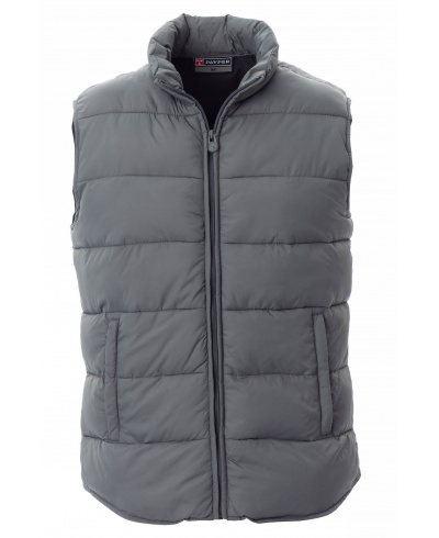 Men’s vest in feather-effect padded polyester, concealed plastic zip, two external pockets with concealed zips, interior in contrasting colour