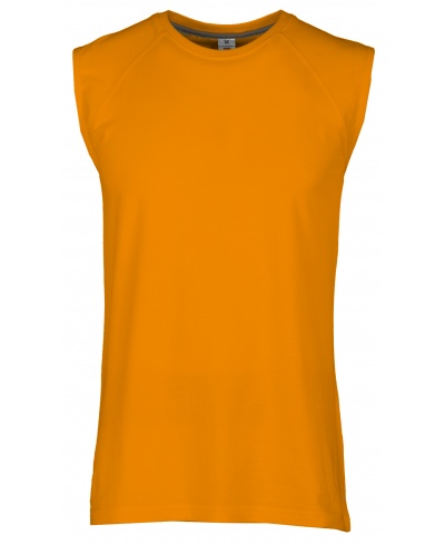 Ärmelloses Herren-Shirt mit Rundhalsausschnitt, Raglanschnitt, Feinripp-Kragen 1,5 cm aus Spandex-Mischgewebe mit Kappnaht an der Vorderseite, Verstärkungsband in Kontrastfarbe von