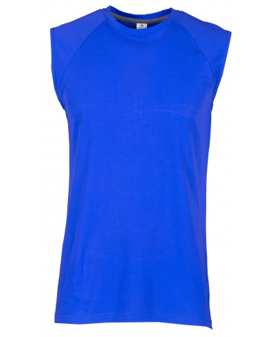 Ärmelloses Herren-Shirt mit Rundhalsausschnitt, Raglanschnitt, Feinripp-Kragen 1,5 cm aus Spandex-Mischgewebe mit Kappnaht an der Vorderseite, Verstärkungsband in Kontrastfarbe von