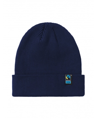 Material: 100% Bio-Fairtrade-Baumwolle, 2x1 Rippenstrick; Gewicht: 480 g/m²; Dehnbarer 2x1 rib knit, 2-lagig. Beanie mit bündchen, sichtbares Fairtrade-Flaggenetikett an der bündchen; Zertifikate: OEKO-TEX® STANDARD 100, 100% CERTIFIED ORGANIC COTTON, FAIR WEAR, EU ECOLABEL, SA8000, NEUTRAL® RESPONSIBILITY