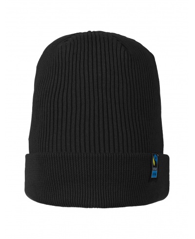 Material: 100% Bio-Fairtrade-Baumwolle, 2x1 Rippenstrick; Gewicht: 480 g/m²; Dehnbarer 2x1 rib knit, 2-lagig. Beanie mit bündchen, sichtbares Fairtrade-Flaggenetikett an der bündchen; Zertifikate: OEKO-TEX® STANDARD 100, 100% CERTIFIED ORGANIC COTTON, FAIR WEAR, EU ECOLABEL, SA8000, NEUTRAL® RESPONSIBILITY