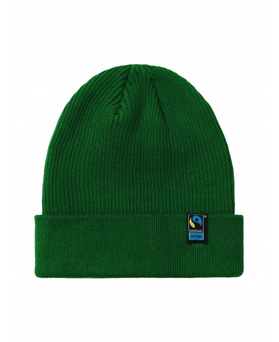 Material: 100% Bio-Fairtrade-Baumwolle, 2x1 Rippenstrick; Gewicht: 480 g/m²; Dehnbarer 2x1 rib knit, 2-lagig. Beanie mit bündchen, sichtbares Fairtrade-Flaggenetikett an der bündchen; Zertifikate: OEKO-TEX® STANDARD 100, 100% CERTIFIED ORGANIC COTTON, FAIR WEAR, EU ECOLABEL, SA8000, NEUTRAL® RESPONSIBILITY