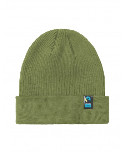 Material: 100% Bio-Fairtrade-Baumwolle, 2x1 Rippenstrick; Gewicht: 480 g/m²; Dehnbarer 2x1 rib knit, 2-lagig. Beanie mit bündchen, sichtbares Fairtrade-Flaggenetikett an der bündchen; Zertifikate: OEKO-TEX® STANDARD 100, 100% CERTIFIED ORGANIC COTTON, FAIR WEAR, EU ECOLABEL, SA8000, NEUTRAL® RESPONSIBILITY