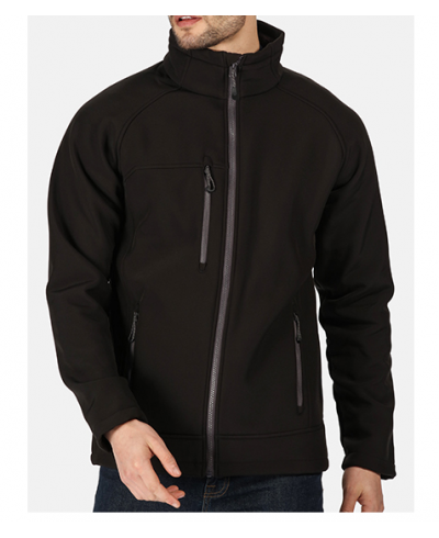 94% Polyester 6% Elasthan, hochfloriges Softshell mit Fleece-Rückseite, wasserabweisende Ausrüstung, schnelltrocknend und superweicher Griff, 2 RV-Taschen unten, 1 RV-Brusttasche