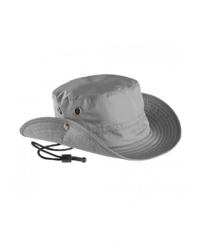 100% beschichtetes Polyester. Hauptnähte verklebt, um eine verbesserte Wasserresistenz zu ermöglichen. Breite, weiche und faltbare Krempe mit seitlichen Druckknöpfen, Lüftungsösen, Riemen mit Stopper. In zwei Größen erhältlich.