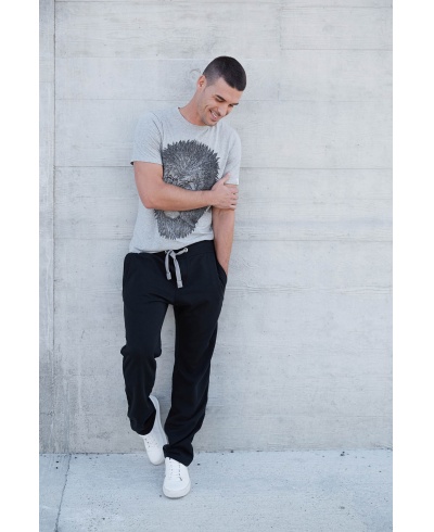 80 % gekämmte Baumwolle / 20 % Polyester. Einlaufvorbehandelt. French-Terry Innenseite. Breiter Bund mit Kordelzug. Gerader Beinabschluß. 2 Vordertaschen + 1 Gesäßtasche mit Druckknopf.