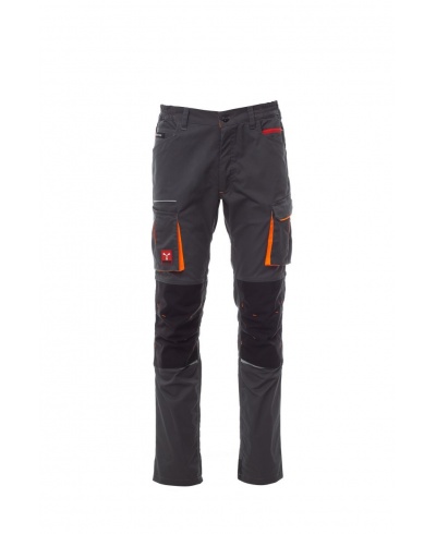 Unisex-Hose, Stretch, Ganzjahreshose, Gummibänder an den Seiten und Gürtelschlaufen an der Taille, Reißverschluss und ein personalisierter Knopf. Die Hose hat zwei geformte Taschen auf der Vorderseite, eine Münztasche auf der rechten Seite und eine Sicherheitstasche mit Reißverschluss auf der linken Seite. Auf der Vorderseite des linken Beins befinden sich eine Zwickeltasche, eine Velcro-Klappe und ein Namensschildbeutel. Auf der Vorderseite des rechten Beins befindet sich eine Handytasche mit reflektierendem Saum und eine Tasche mit Zwickel. Beide Beine haben Befestigungen für Nylon O Knieschoner