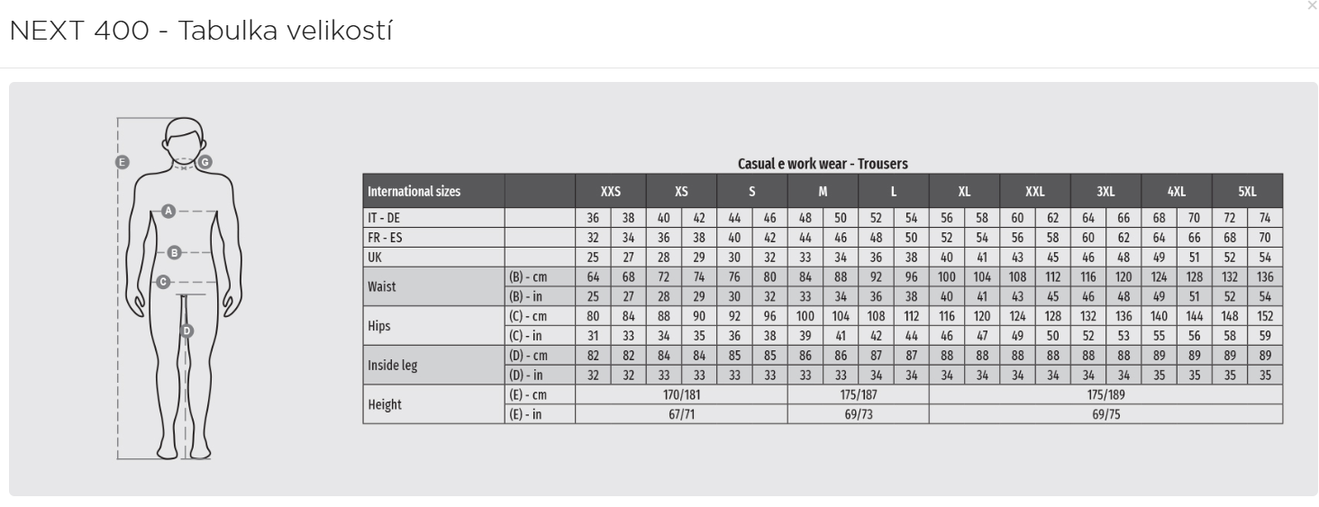 | material: | 50% POLYESTER 30% BAVLNA 20% ELASTOMULTIESTER; kepr stretch; 260gr/MQ | |