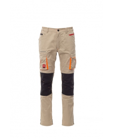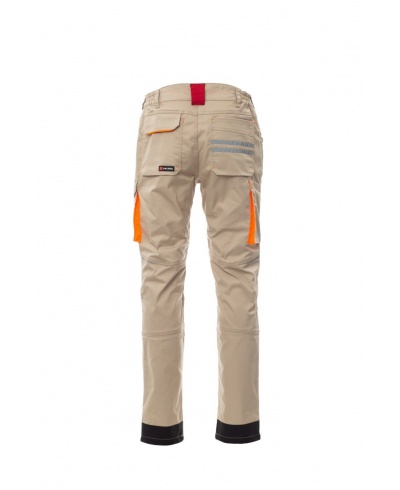 Unisex-Hose, Stretch, Ganzjahreshose, Gummibänder an den Seiten und Gürtelschlaufen an der Taille, Reißverschluss und ein personalisierter Knopf. Die Hose hat zwei geformte Taschen auf der Vorderseite, eine Münztasche auf der rechten Seite und eine Sicherheitstasche mit Reißverschluss auf der linken Seite. Auf der Vorderseite des linken Beins befinden sich eine Zwickeltasche, eine Velcro-Klappe und ein Namensschildbeutel. Auf der Vorderseite des rechten Beins befindet sich eine Handytasche mit reflektierendem Saum und eine Tasche mit Zwickel. Beide Beine haben Befestigungen für Nylon O Knieschoner
