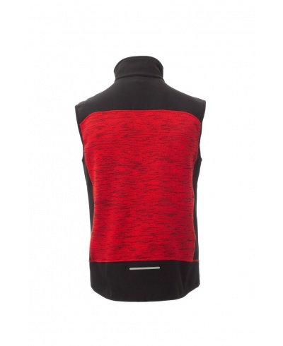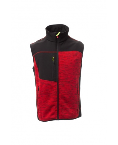 Taillierte Herrenweste, Reißverschluss mit „Semi-Auto-Lock“-Metallschieber und personalisiertem Schiebergriff. Feiner Saum an Handgelenk und Taille, 2 Seitentaschen mit Reißverschluss, 1 Brusttasche. Strickgewebe mit schwarzen Softshell-Einsätzen.