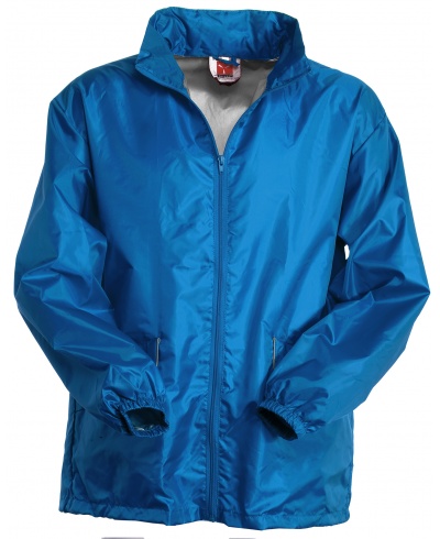 Wasserdichte Unisex-Jacke, ungefüttert, mit einrollbarer Kapuze, elastischen Ärmelbündchen, zwei Taschen mit verdeckten Reißverschlüssen, reflektierenden Profilen und Einsatz auf dem Rücken, silberfarbener Innenseite (Ausnahme: gelbes Modell), Jeweils in einem mit Kordelzug und Stopper verschließbaren Täschchen mit seitlichem Griff verpackt