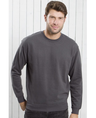 Doppelte Naht am Kragen, an den Ärmeln und unten. Mit Lycra gerippter Abschluss am Kragen, an den Ärmeln und unten. French Terry.