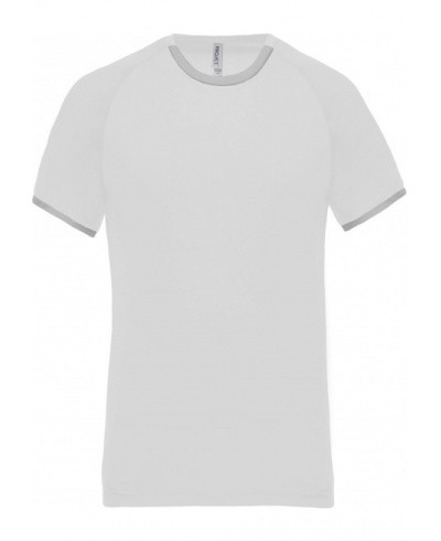 100 % Polyester Interlock. Raglanärmel. Nackenband. Kontrastfarbenes Band an Halsausschnitt und Ärmelenden. Kontrastfarbene Decknaht an den Ärmelübergängen.