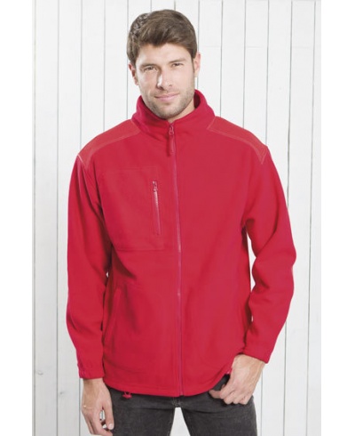 Ganzer Reißverschluss und seitliche Taschen. Micropolar Fleece mit Anti-Pilling. Verstellbare Kordel mit Stoppern. Verstärkung an Schulter und Ellenbogen.
