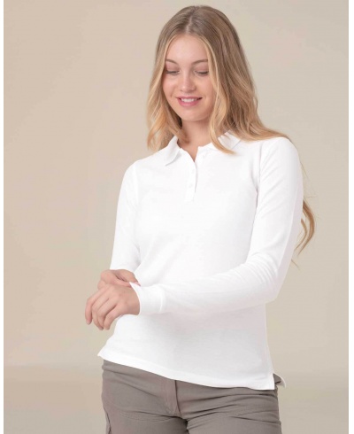 Damen Polo Piquee Shirt, tailliert, langer Arm mit Bündchen. Enzym behandelte Baumwolle, besonders weicher Griff. Schmale Knopfleiste mit 3 Knöpfen. 1/1 Rib Kragen und Bündchen mit Lycra. Verstärkte Seitenschlitze. Grey Melange: 85% Baumwolle / 15% Polyester.