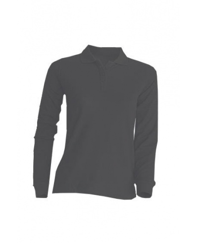 Damen Polo Piquee Shirt, tailliert, langer Arm mit Bündchen. Enzym behandelte Baumwolle, besonders weicher Griff. Schmale Knopfleiste mit 3 Knöpfen. 1/1 Rib Kragen und Bündchen mit Lycra. Verstärkte Seitenschlitze. Grey Melange: 85% Baumwolle / 15% Polyester.