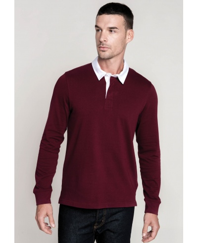 100 % Jersey-Baumwolle, vorgeschrumpft u. gekämmt. Kragen aus Baumwoll-Serge in Kontrastfarbe Weiß (Red und Dark Grey mit schwarzem Kragen). Knopfleiste mit 3 Knöpfen. Ärmelabschlüsse in Feinripp 1x1. Fischgrätnackenband und Seitenschlitze.