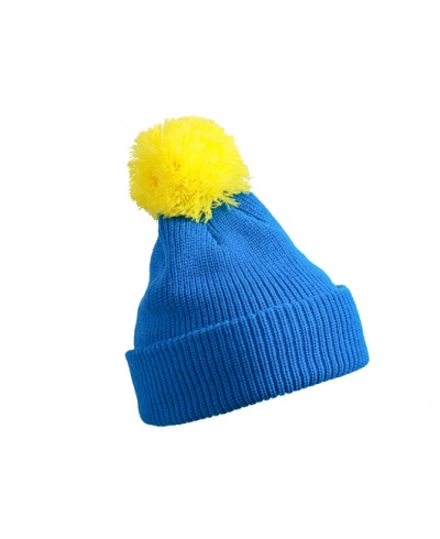 Strickmütze mit Umschlag und Pompon
