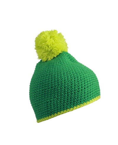 Häkelmütze mit Kontrastrand und Pompon