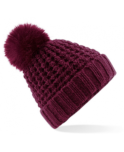 Prächtiger Popcorn-Strick, TearAway-Label für einfaches Rebranding, luxuriöser einfarbiger Kunstpelz-Bommel, abnehmbarer Bommel für einfaches Waschen,