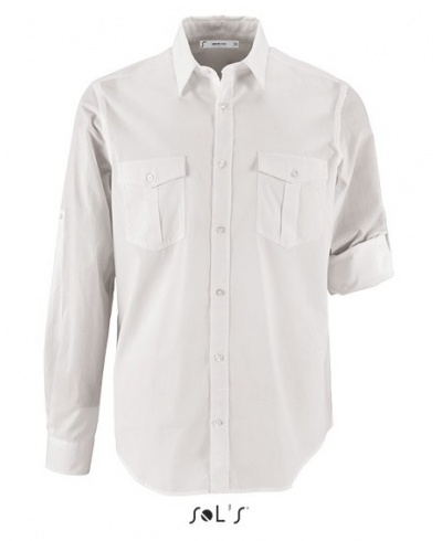 QUALITÄT: VORGEWASCHENE POPELINE - 100% Baumwolle; 110 g/m²; Gerader Schnitt, lange Ärmel, 2 aufgesetzte Taschen mit Pattenverschluss, Patte für Krempelärmel, Knopfleiste mit 7 Knöpfen