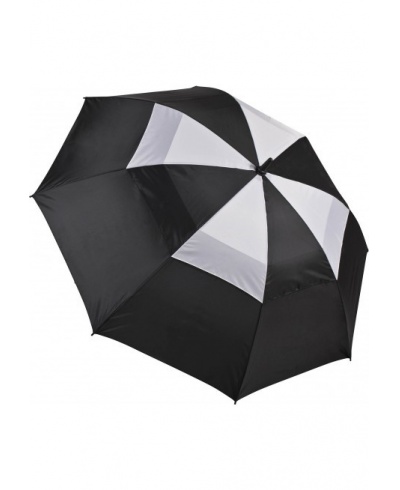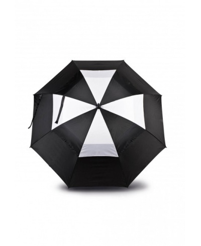 29,5" (75 cm) Golfschirm, manuell öffnend, Sicherheitsschieber. Stock und Stangen aus Glasfaser mit Kunststoff-Strebenspitzen. Bicolor-Plane 210T Polyester mit Windproof-Gestänge. Ergonomischer und rutschfester Griff. Kontrastfarbenes Futteral mit Reißverschluss.