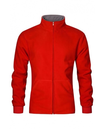 Die Doppelfleecejacke verfügt über einen Stehkragen und einen durchgehenden verdeckten Reißverschluss, sowie schmale Ärmelbündchen mit elastischem Besatz und zwei seitliche Reißverschlusstaschen. Die Innenseite der Jacke ist in einer Kontrastfarbe gehalten und besteht aus Polyester mit beidseitiger Antipilling-Behandlung. Die Fleecejacke ist schmal geschnitten.