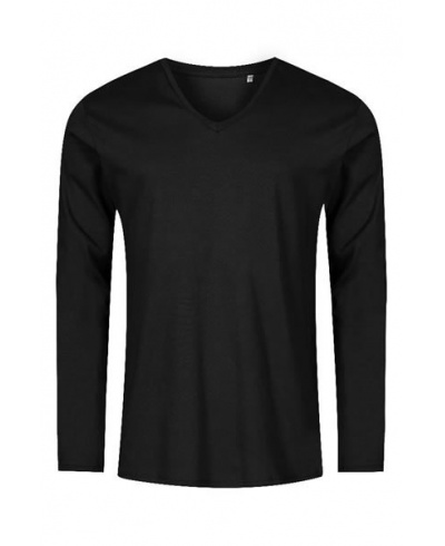 Langärmliges Single-Jersey-T-Shirt mit V-Ausschnitt und Stoffkragen aus gekämmter Baumwolle. Die besonders glatte Oberfläche und der fließende Stoff verleihen dem Jersey ein einzigartiges, elastisches und seidiges Finish. Das T-Shirt ist schmal geschnitten und mit Seitennähten versehen. Zertifiziert nach OEKO-TEX®