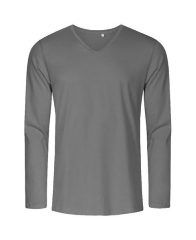 Langärmliges Single-Jersey-T-Shirt mit V-Ausschnitt und Stoffkragen aus gekämmter Baumwolle. Die besonders glatte Oberfläche und der fließende Stoff verleihen dem Jersey ein einzigartiges, elastisches und seidiges Finish. Das T-Shirt ist schmal geschnitten und mit Seitennähten versehen. Zertifiziert nach OEKO-TEX®