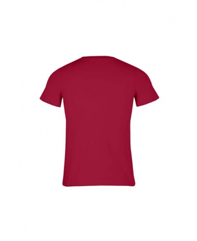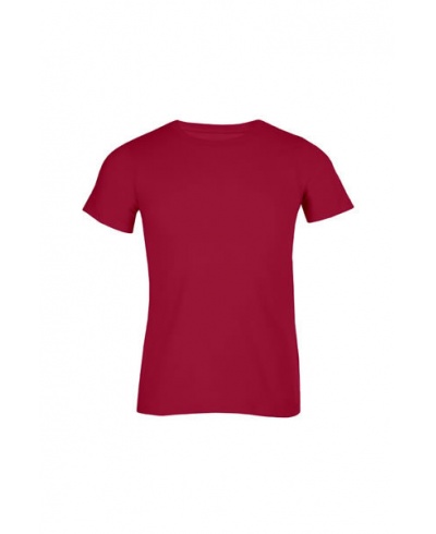 Modernes Single-Jersey-T-Shirt mit Elasthan und kleinem geripptem Ausschnitt aus langstapeliger, gekämmter, zertifizierter (Bio-)Baumwolle. Das T-Shirt ist tailliert geschnitten und besteht aus Schlauchstoff.