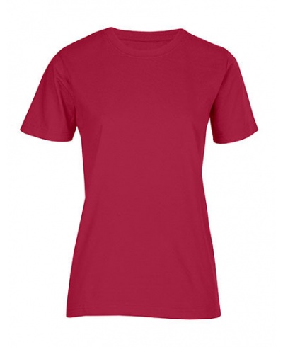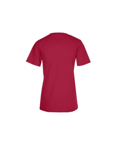 Modernes Single-Jersey-T-Shirt mit Elasthan und kleinem geripptem Ausschnitt aus langstapeliger, gekämmter, zertifizierter (Bio-)Baumwolle. Das T-Shirt hat einen taillierten Schnitt und Seitennähte.