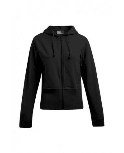 Modernes Molton-Sweatshirt mit Kapuze, ungebürstet, hat durchgehenden Kunststoff-Reißverschluss im Ton, außerdem Elasthan-Bündchen an Ärmeln und Saum. Das Sweatshirt hat eine weite Satteltaille, gerippte Zwickelschlaufen und Vordertaschen mit kontrastierenden Rippen. Das Sweatshirt besteht aus gekämmter Baumwolle mit Elasthan-Anteil für mehr Bewegungsfreiheit und ist figurbetont geschnitten.