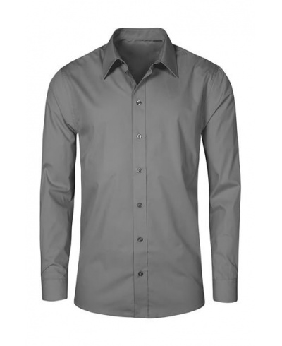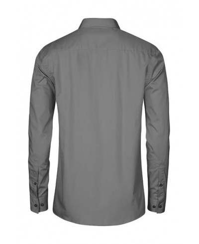 Ein klassisches Langarmhemd aus Popeline-Mischung mit verstärktem Kentkragen und Knopfleiste mit farblich abgestimmten Knöpfen sowie einer separaten Brusttasche und Ersatzknöpfen. Besonderheiten dieses Hemdes: 2-Knopf-verstellbare Manschette (Tonnenmanschette), lange Ärmelleiste mit Knopf, doppelter Rückensattel, umgeschlagener Saum, aus gekämmter Baumwolle mit Polyester. Das Hemd ist modern