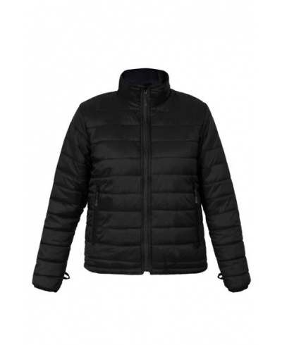 Die Steppjacke verfügt über einen Stehkragen, einen durchgehenden Reißverschluss, zwei seitliche Reißverschlusstaschen, einen Jackenverschluss und ein neutrales Größenetikett. Die Jacke besticht durch ihren sportlichen Schnitt. Es besteht aus Nylon (Außen-/Innenmaterial) und Polyester (Wattierung).