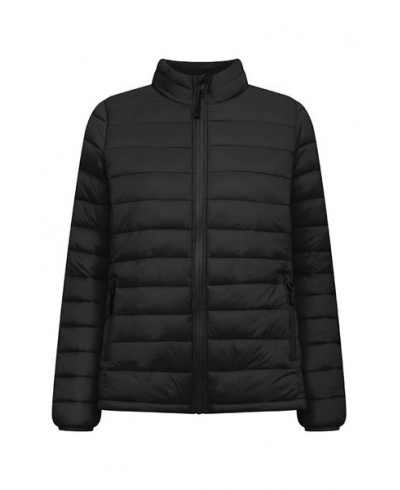 Wattierte Jacke mit wasserdichten Reißverschlüssen, Stehkragen, Kinnschutz, Innentasche. Die Jacke verfügt über einen durchgehenden Reißverschluss, zwei seitliche Reißverschlusstaschen, einen Tunnelzug am Saum mit innenliegenden Schäften und einen unsichtbaren Reißverschluss zur Dekoration.