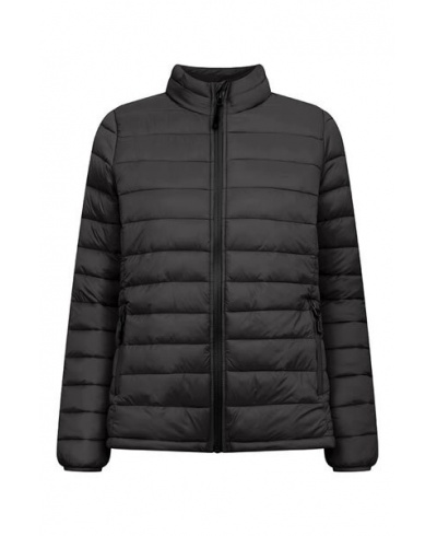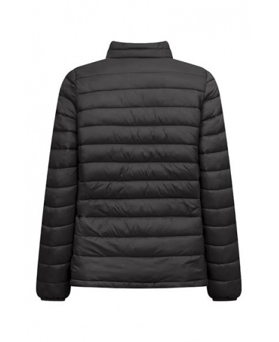 Wattierte Jacke mit wasserdichten Reißverschlüssen, Stehkragen, Kinnschutz, Innentasche. Die Jacke verfügt über einen durchgehenden Reißverschluss, zwei seitliche Reißverschlusstaschen, einen Tunnelzug am Saum mit innenliegenden Schäften und einen unsichtbaren Reißverschluss zur Dekoration.