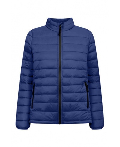 Wattierte Jacke mit wasserdichten Reißverschlüssen, Stehkragen, Kinnschutz, Innentasche. Die Jacke verfügt über einen durchgehenden Reißverschluss, zwei seitliche Reißverschlusstaschen, einen Tunnelzug am Saum mit innenliegenden Schäften und einen unsichtbaren Reißverschluss zur Dekoration.
