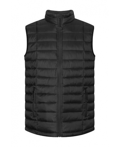 Die wattierte Weste verfügt über wasserdichte Reißverschlüsse, einen Stehkragen, einen Kinnschutz, eine Innentasche, einen durchgehenden Reißverschluss, zwei seitliche Reißverschlusstaschen, einen Kordelzug am Saum mit Reißverschluss innen und einen unsichtbaren Reißverschluss zum Abschluss. Die Weste besteht aus Nylon (Außen-/Innenmaterial) und Polyester (Wattierung). Die Weste hat einen modernen Schnitt.