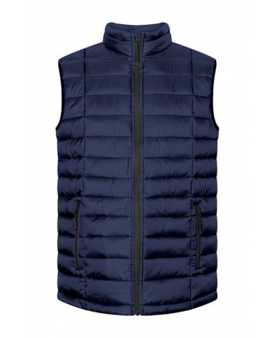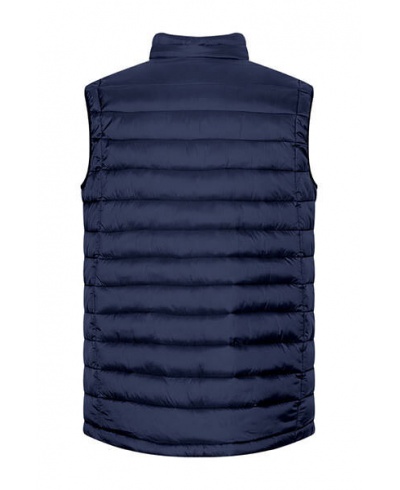 Die wattierte Weste verfügt über wasserdichte Reißverschlüsse, einen Stehkragen, einen Kinnschutz, eine Innentasche, einen durchgehenden Reißverschluss, zwei seitliche Reißverschlusstaschen, einen Kordelzug am Saum mit Reißverschluss innen und einen unsichtbaren Reißverschluss zum Abschluss. Die Weste besteht aus Nylon (Außen-/Innenmaterial) und Polyester (Wattierung). Die Weste hat einen modernen Schnitt.