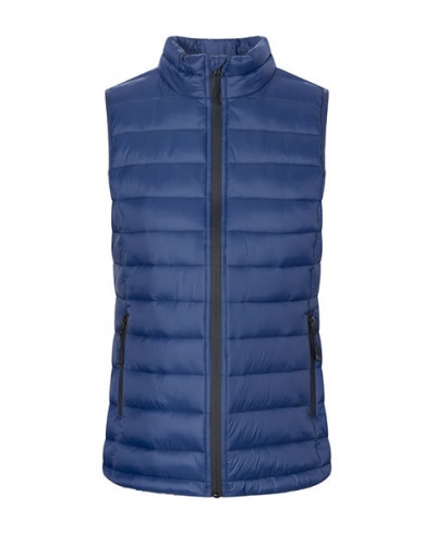 Gepolsterte Weste. Ausstattung: wasserdichte Reißverschlüsse, Stehkragen, Kinnschutz, Innentasche, durchgehender Reißverschluss, zwei seitliche Reißverschlusstaschen, Tunnelzug am Saum mit Innensteg, unsichtbarer Reißverschluss zur Verschönerung, neutrales Größenetikett. Die Weste besteht aus Nylon (Außen-/Innenmaterial) und Polyester (Wattierung). Die Weste hat einen modernen Schnitt.