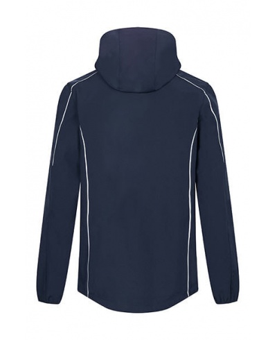 Leichte Jacke. Merkmale dieser Jacke: Kapuze, wasserdichte Reißverschlüsse, Kinnschutz, verlängerter Rücken mit abgerundetem Saum, zwei seitliche Reißverschlusstaschen, eingenähter Schlüsselring in der Seitentasche, reflektierende Paspeln und Reißverschlussschieber, Teilungsnähte, neutrales Größenetikett. Die Jacke ist atmungsaktiv und wasserdicht und hat einen modernen Schnitt.